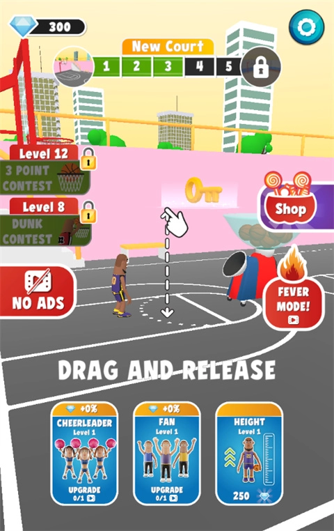 玩家可以通过多手指操控,实现一种花式投篮方式,你能够以自己喜欢的姿势来完成投篮动作。