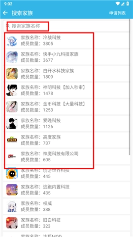3、若选择加入其他家族,系统会展示所有家族列表,支持通过输入家族名称进行搜索,以便找到您想要加入的家族。