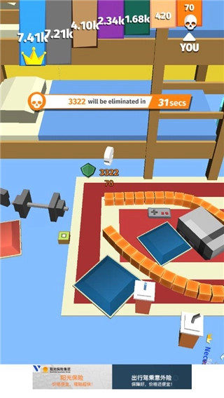 5、攻击那些比你体型小的蛇蛇,通过收集它们被消灭后散落的方块,能更快地让自己成长起来。