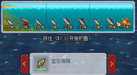 3级鱼竿+宝石饵=金鱼。