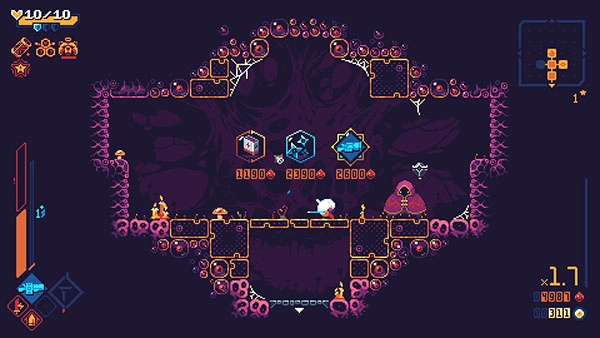 游戏采用鲜亮明快的像素画风,玩家可操纵主角在狭小的地牢中闪转腾挪,配合Joonas Turner创作的动感BGM,尽情体验类银河恶魔城的狂野粗豪风格!