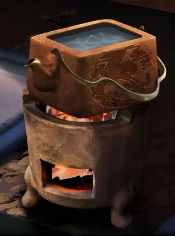 6、把水壶接满水,将符箓对准墙上的画,接着烧水,稍等片刻就能得到一壶热水。