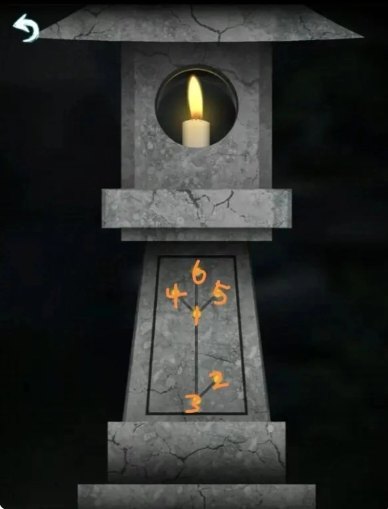 11、回到院子里点亮其中的石灯,按照石灯亮起的先后顺序,点击正屋中箱子的密码锁,即可获得灯笼。