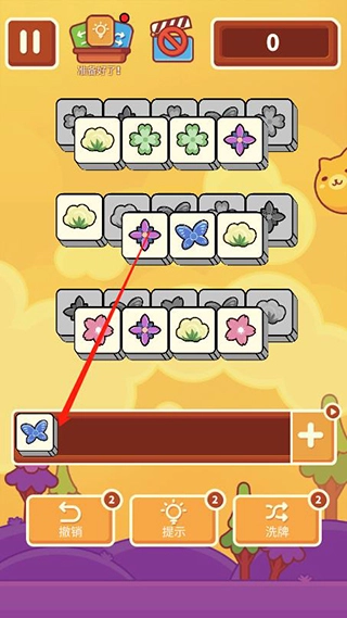 1、从上面选择方块,方块会进入下面的卡槽中;