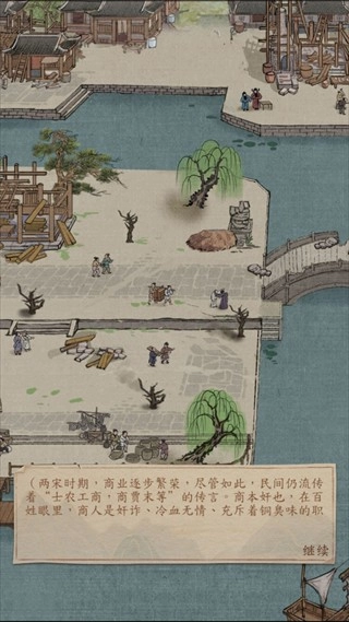 这段文本可以这样修改: 以宋代为时代背景,凭借细腻的水墨笔触,生动再现了古代市井的繁华景象。从傍水而建、因水而兴的古城,到青石板铺就的街道旁,鳞次栉比的商铺林立。这一切都让玩家仿佛穿越时空,身临其境,开启一段属于自己的传奇商业之旅。
