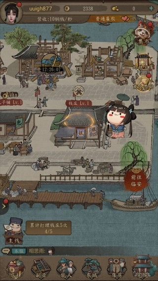 采用精致的水墨画风,还原了古代市井的繁华盛景。在这座依水而兴的古城里,青石板路两旁,您的店铺鳞次栉比,从钱庄到茶楼,从当铺到棋馆,七十二行当的兴衰尽在您掌控之中。您可以根据自己的喜好自由规划店铺布局,打造独一无二的商业街区。