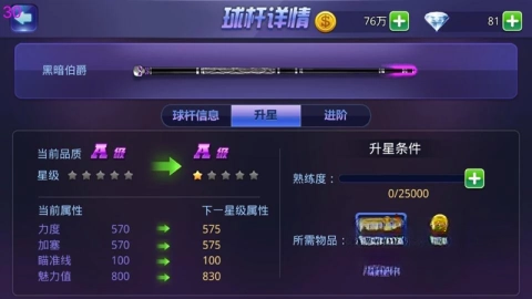 球杆升星需满足两个条件:一是对应等级的星木,二是球杆熟练度。具体操作时,要先把球杆的熟练度提升到满值,同时准备好足够数量的同等级星木,这样就能完成升星了。