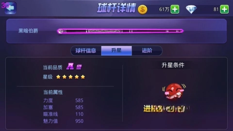 球杆升至5星后,就能开展进阶操作。每完成一次进阶,球杆等级便会提升一个层次,进阶顺序依次从C开始。