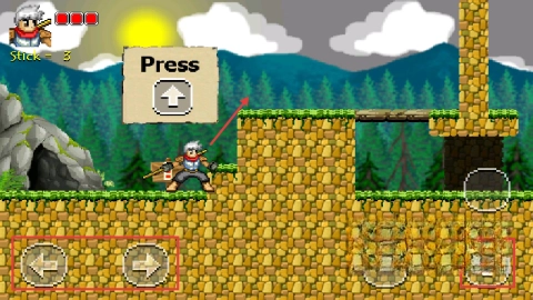1、进入游戏后,先用左右方向键操控角色移动,当看到提示时按上键就能越过石块之类的阻碍物,接着继续探索关卡里的秘密。