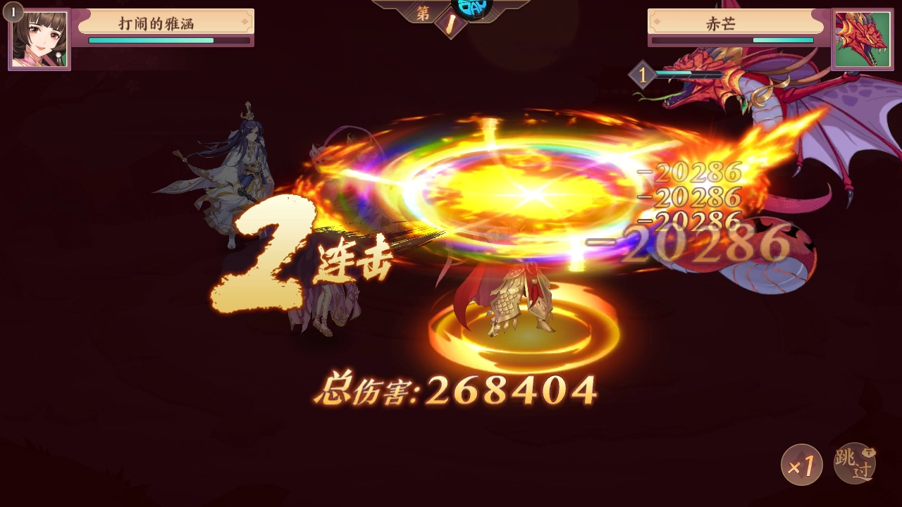 9、纪宁与孙悟空携手成功击退对手,两人皆为红色角色,嫦娥则是紫色角色。