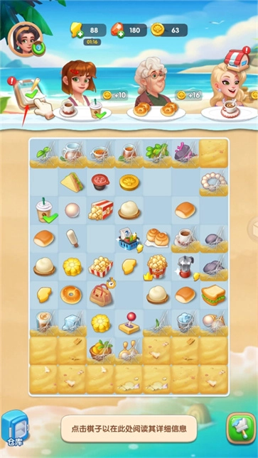 《沙滩大作战》是一款自由度极高的模拟经营与消除结合的游戏,玩家需完成更多合成消除任务,从而获取更多道具和各类不同的菜谱。