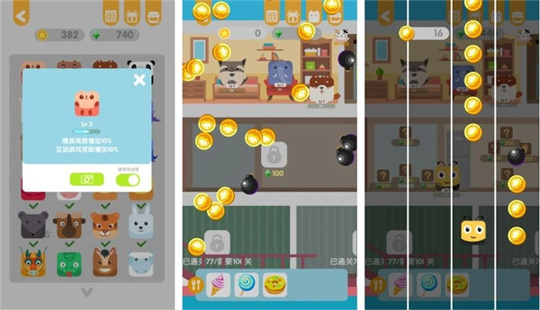 6、在乐园里点击动物头像旁的按钮,就能和动物们进行游玩互动。每个房间的小动物都有所不同,互动结束后还能领取金币奖励。