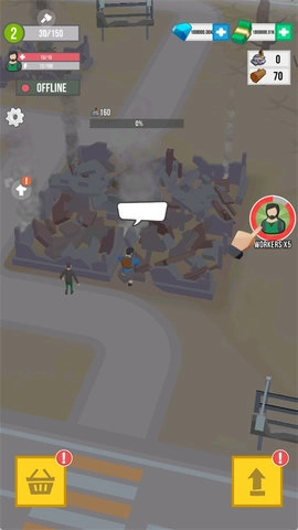 2、点击召唤工人,能帮你提升工作效率,更快地打理这片土地、清理废墟。