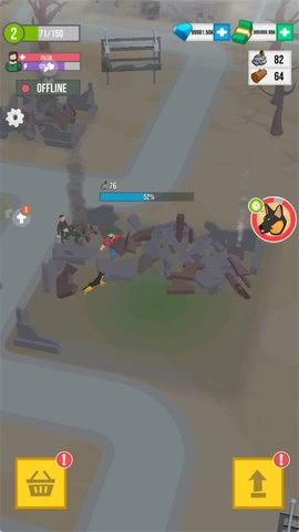 1、进入后,通过左侧的透明轮盘操控角色移动,到达指定位置后会自动清理废墟,从而开启建设之旅。