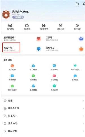 2.然后在我的页面中点击【畅玩广场】;