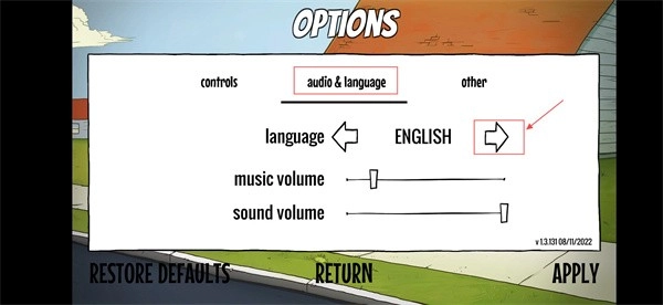 2、打开options界面后,找到并点击“audio&language(声音和语言)”选项,然后通过点击箭头将语言切换为中文。