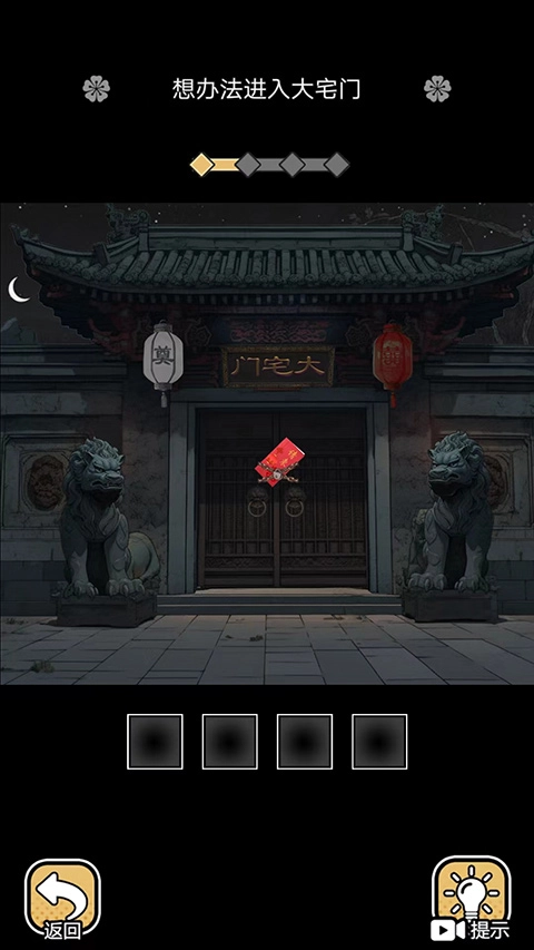 3、当前关卡的任务是设法进入大宅门,我们点击门上的红色请柬