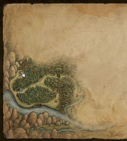 3、把马铃薯给强盗吃了,他就会放你过去,这时候全地图就解锁了。等强盗吃饱,他还想喝酒,咱们得去帮他弄酒来。