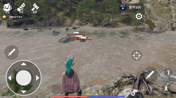 3、场景内存在大量怪物,等待玩家探索挑战。击败怪物后,玩家可借助各类球球收集怪物;点击树木,玩家则能获取木材。