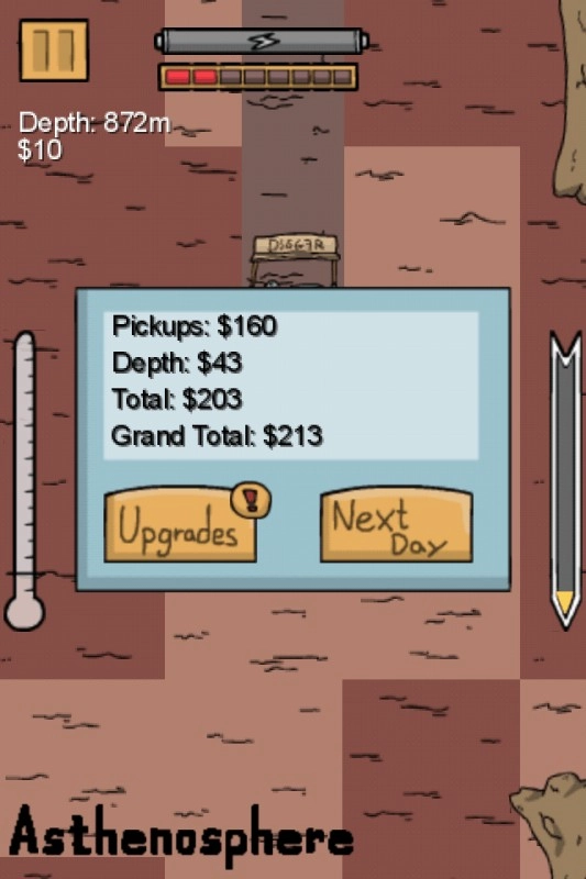 3、挖掘的深度越大,玩家能获得的分数就越高,从而得到更多用于升级的资源。
