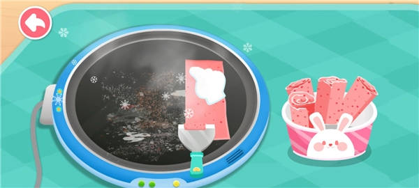 6、接着滑动屏幕里的铲子,对食材进行翻炒,就能得到酸奶卷了。