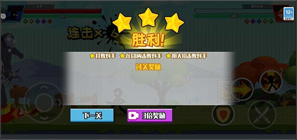 1、玩家可以操控火柴人进行格斗对战,有大量敌人等待玩家去挑战。