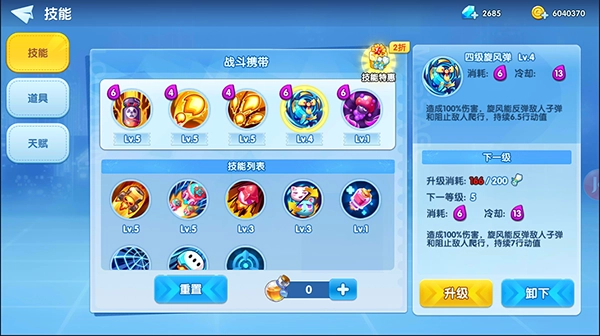 可通过技能道具页面中配置好所需要的道具哦!
