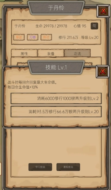2. 百花剑法适合前期开荒时临时使用,它带有混乱效果,但该效果不够稳定,因此不建议进行升级。