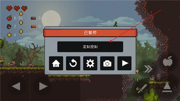 3、要是对当前的按键位置和大小不满意,可点击右上角的暂停按钮,接着点击按键定制来调整。