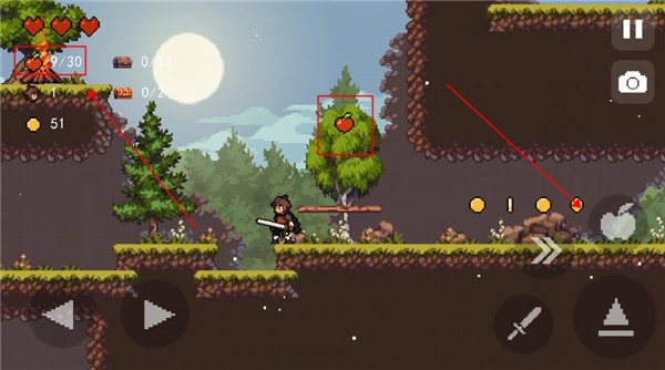 7、这件物品能够进行远程攻击,不过得收集苹果才能发起攻击,左上角显示的是你当前拥有的苹果数量以及可以攻击的次数。