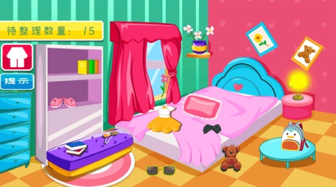 2、第一步是整理房间,孩子可以通过点击物品来完成房间的整理工作,以此培养他们的整理能力。