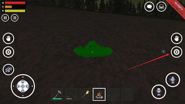 3、接着拿出武器,点击瞄准就能射击(通常是石斧,若想使用其他武器则需自行制作);