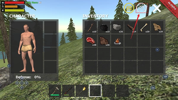 1、在野外生存模拟器中点击左上角的背包图标。