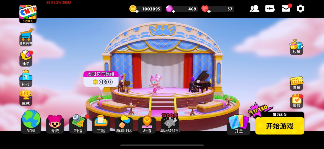三消玩法:以三消为核心机制,包含数千个各具特色的关卡。玩家能够运用专属道具破除障碍,凭借精妙的消除策略达成连击效果,连击次数越多,特效呈现越华丽,同时还可提升潮玩值,解锁潮玩角色的技能大招。