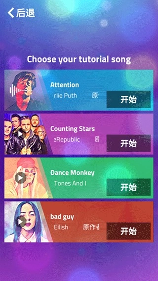 3、进入歌曲界面后,点击黑色方块上的“开始”按钮,即可正式开启游戏。