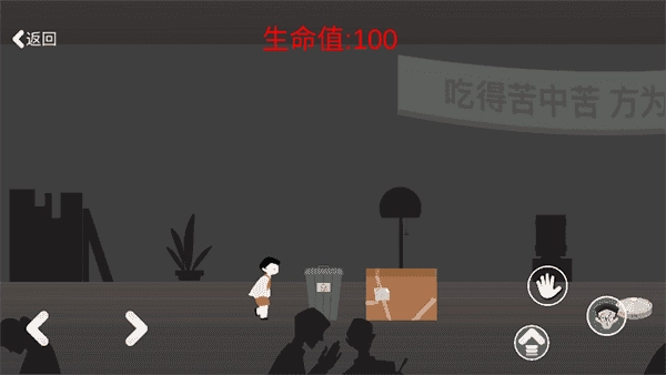 3、当遇到垃圾桶时,孩童因身形小巧无法跳过,只能点击成人头像切换为大人形态。