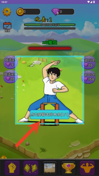 1、快速点击屏幕,角色便会即刻做出敲击动作,这种操作方式灵敏又迅捷,很适合用来快速击破那些相对薄弱的木板层。
