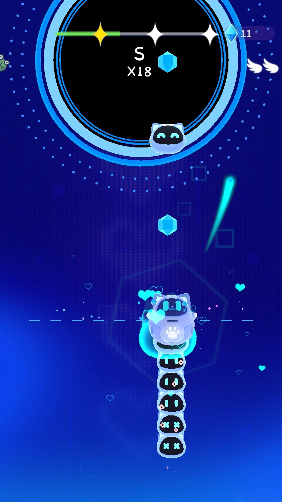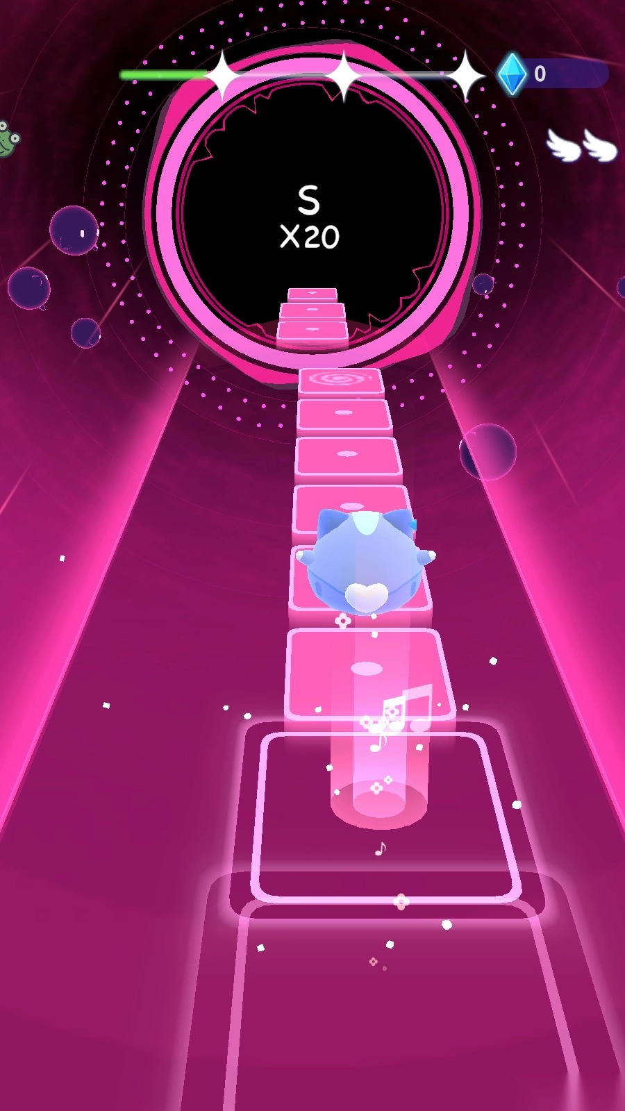 随着时间推移,关卡会解锁新的玩法,会有音符从上方落下,借助这些音符就能取得胜利。