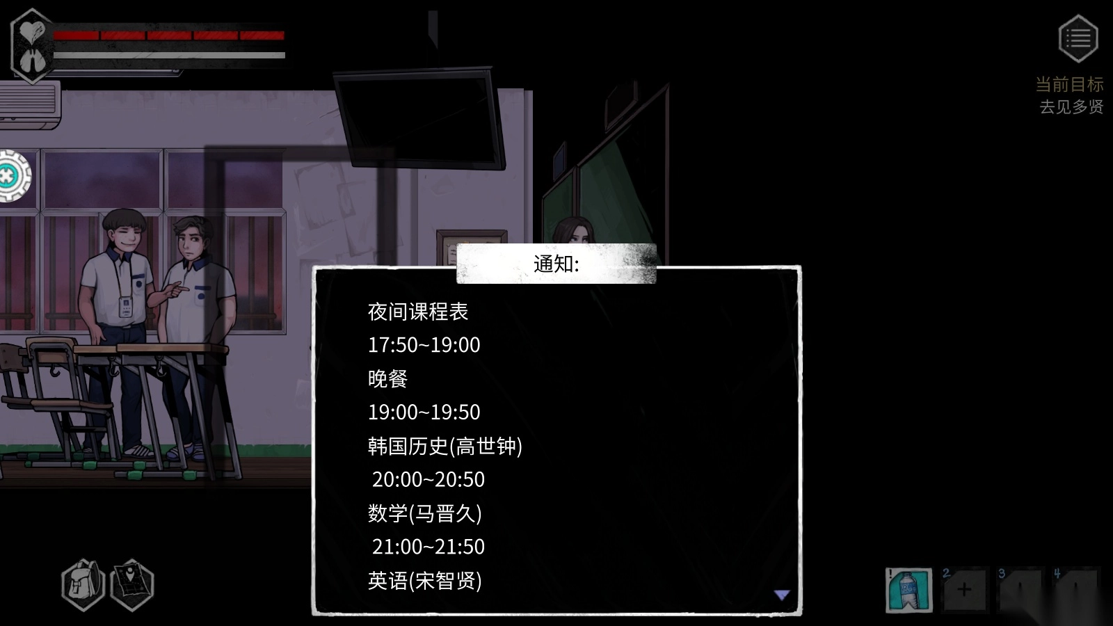 进入后就能呈现教室界面,玩家可以化身一名学生,探寻离开世华高中的途径。