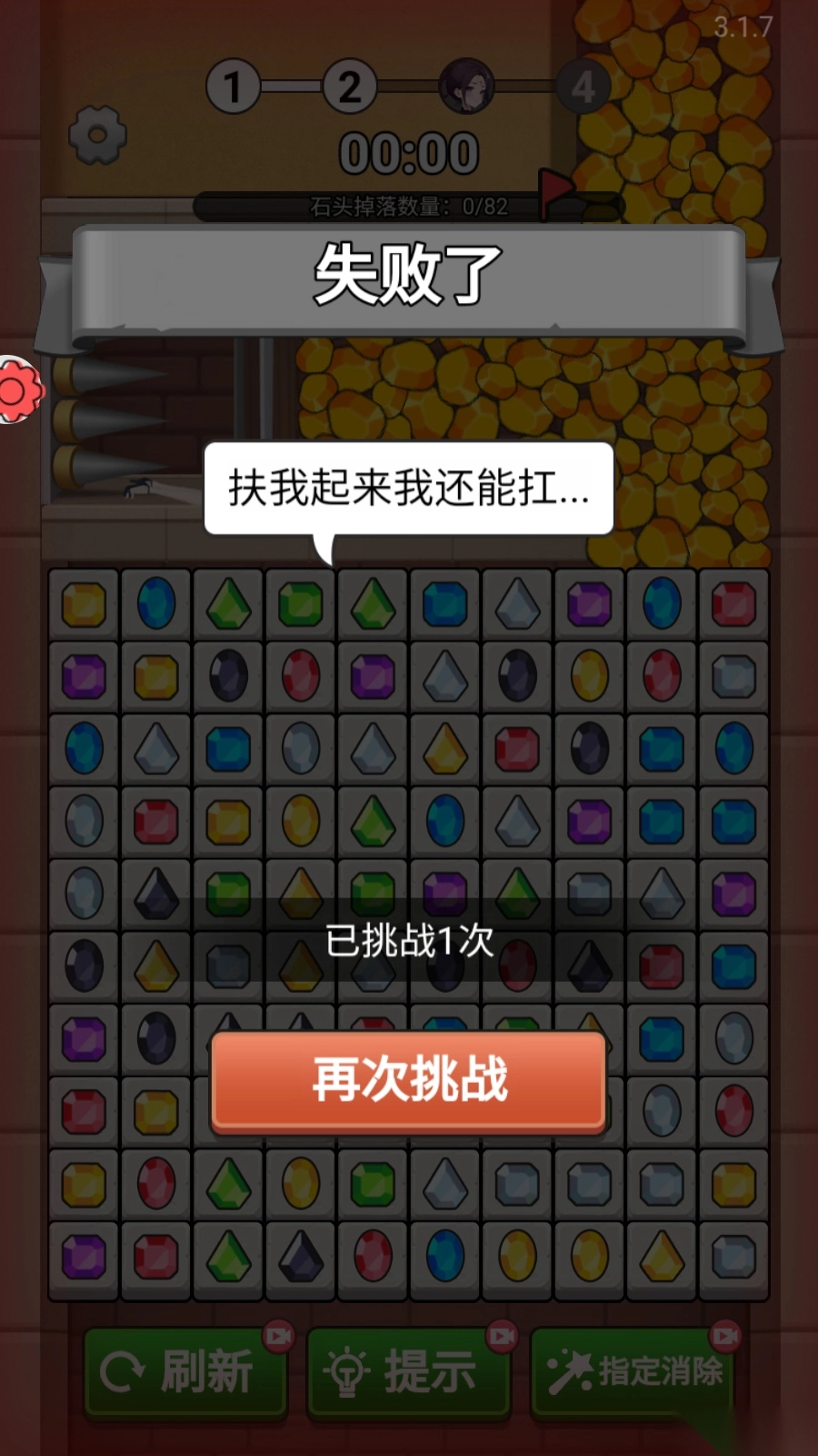 5、要是挑战失败了,你既可以接着挑战,也能去查看底部的提示信息。