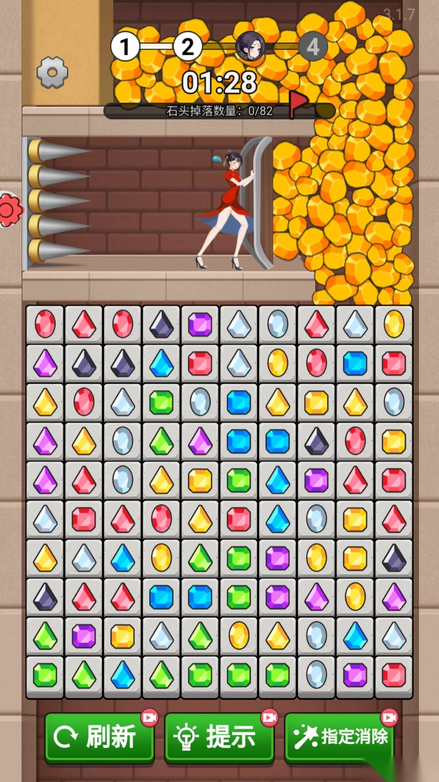 把相同的砖块连在一起消除,救出被困的小女孩,快来救救她吧
