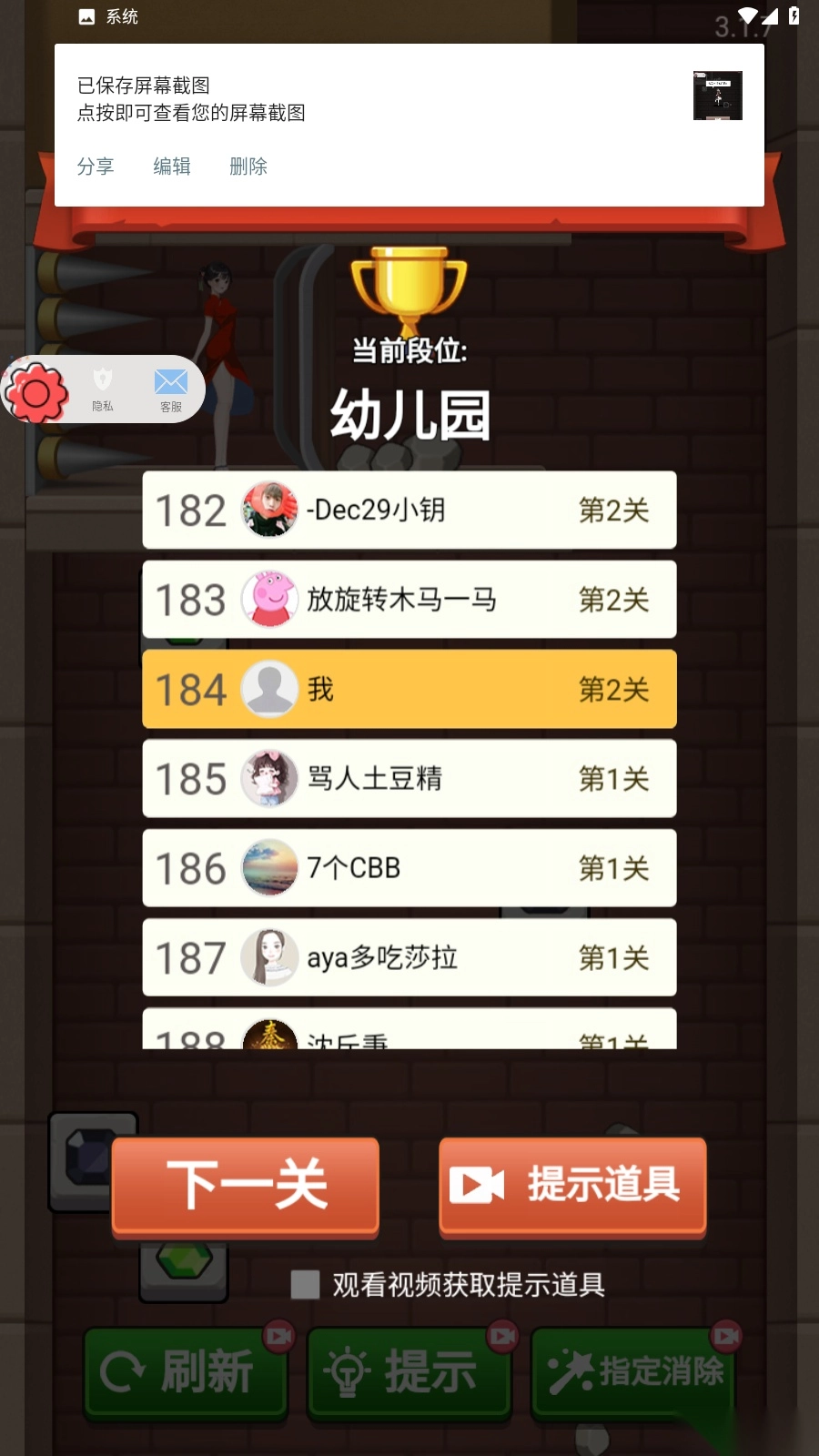 3、支持排行榜查看功能,玩家通关后可进入排行榜,查看自己的排名情况
