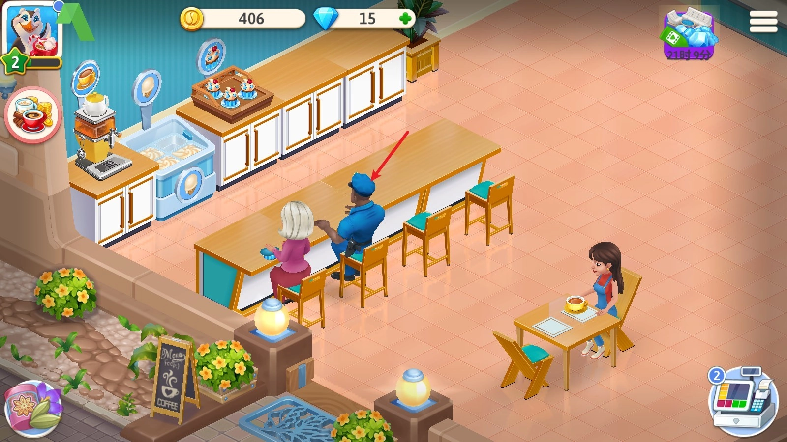 进入后,你的咖啡馆就会有客人前来,点击即可为其点餐。