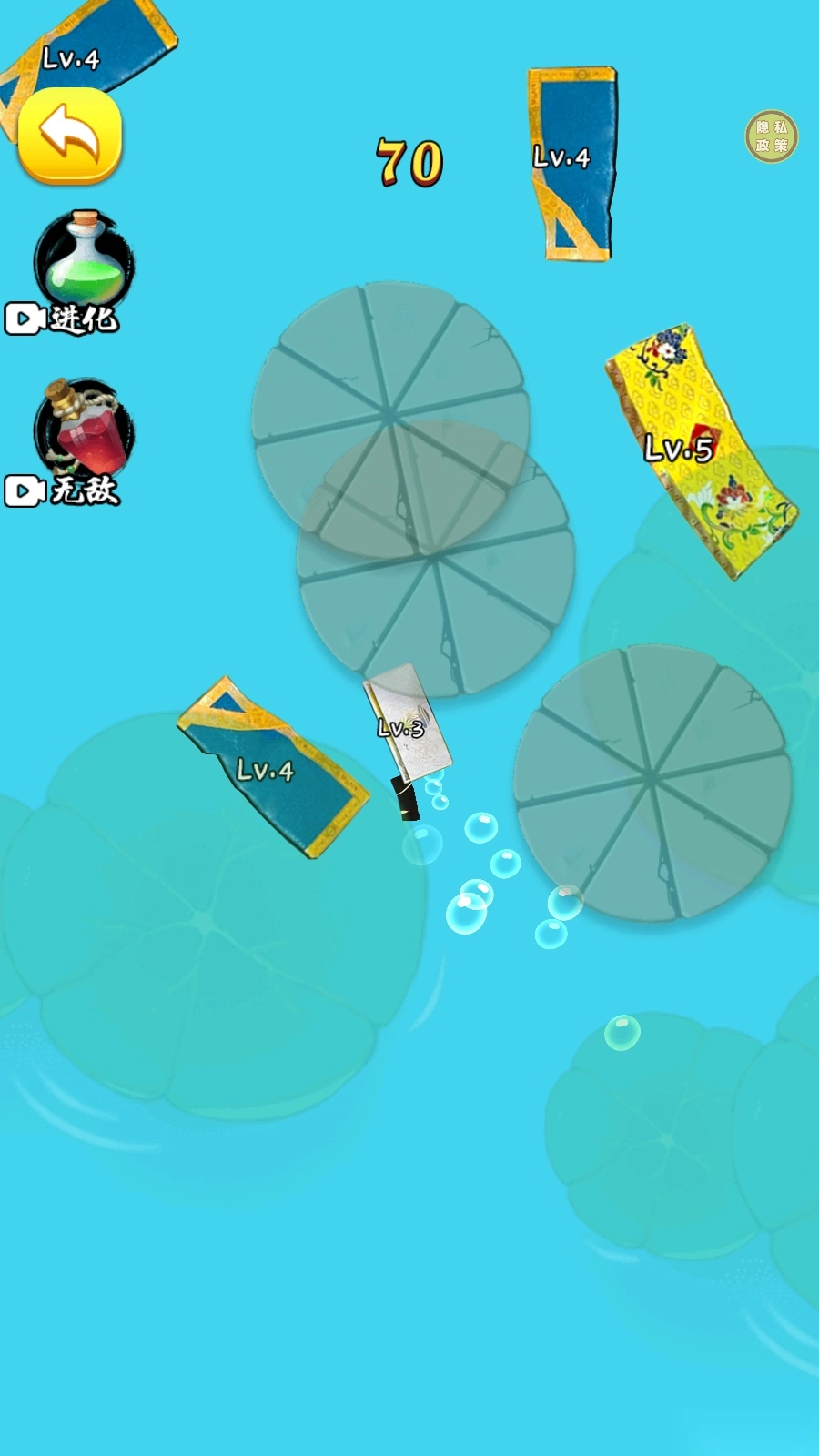 3、玩家初期持有的是一级卡牌,若受到二级卡牌的攻击便会死亡,但具备复活能力