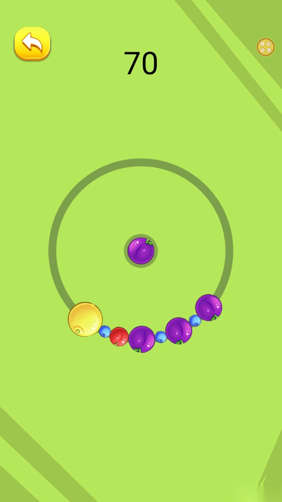 6、祖玛大西瓜的玩法界面如图所示,游戏过程中会持续添加各类水果,相同的水果能够合成更大的水果。