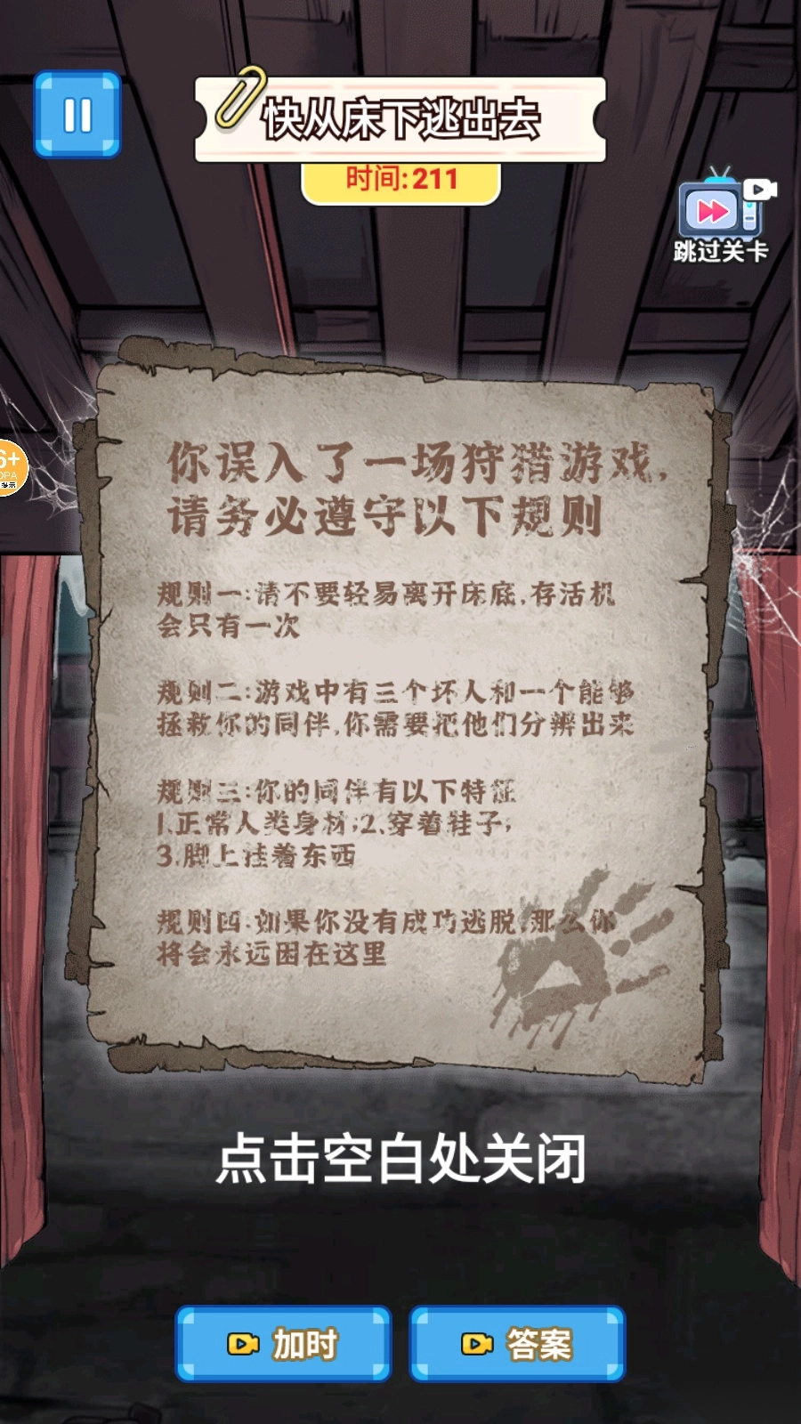 6、这里是关卡提示内容,请仔细阅读界面上的文字信息,只要找出你的同伴就能获得胜利。