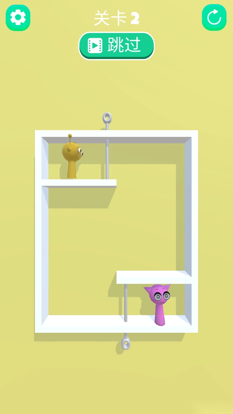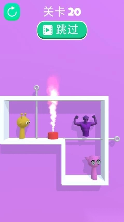2、玩家需在关卡里拔出插销,使角色能够前进,只要相遇就能获胜