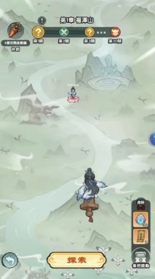 2、探索不同类型的地图,随机触发奇遇事件,积累资源与经验。