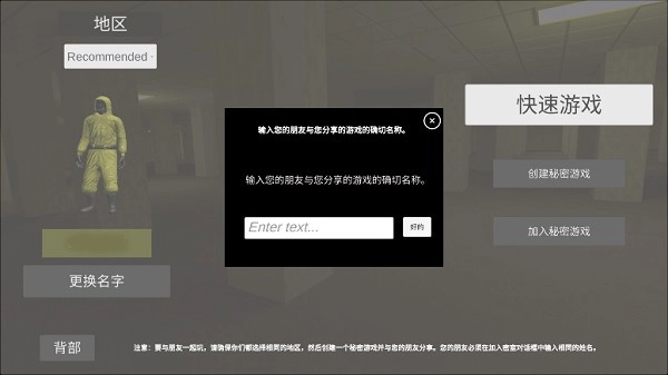 8、选择相同地图、地区后,输入相同的房间名称。