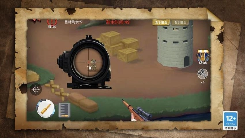 在挑战新关卡前可以切换新武器,初始可使用系统提供的汉阳造,随着关卡的解锁,还能在软件中获取AWP狙击枪。